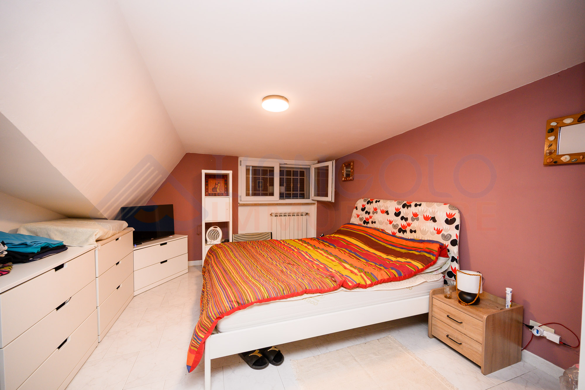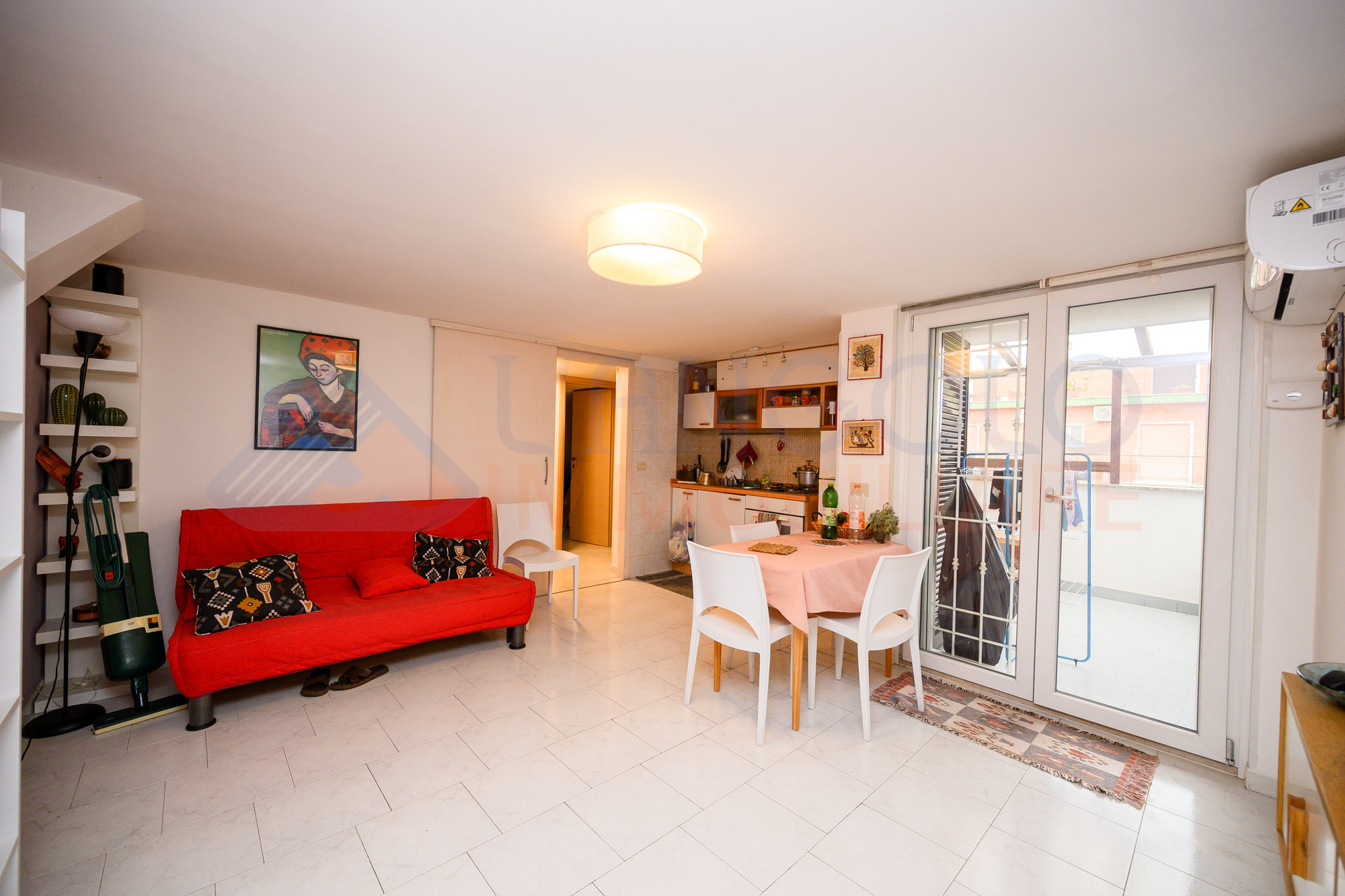 Accediamo all’immobile tramite l’ampio soggiorno con cucinotto e sfogo esterno su un balcone abitabile. Proseguendo all’interno dell’abitazione troviamo la zona notte composta da camera da letto matrimoniale, una cameretta, ed infine il bagno servito da doccia.