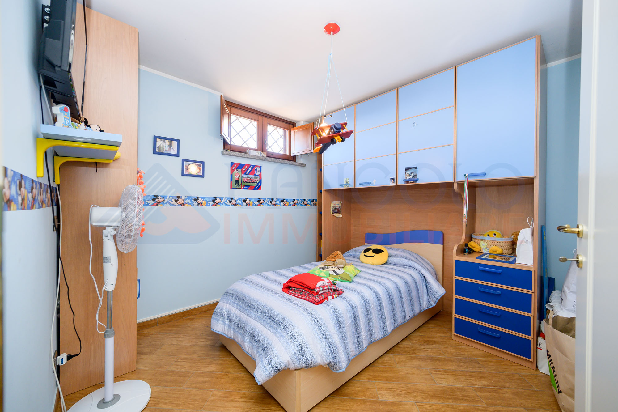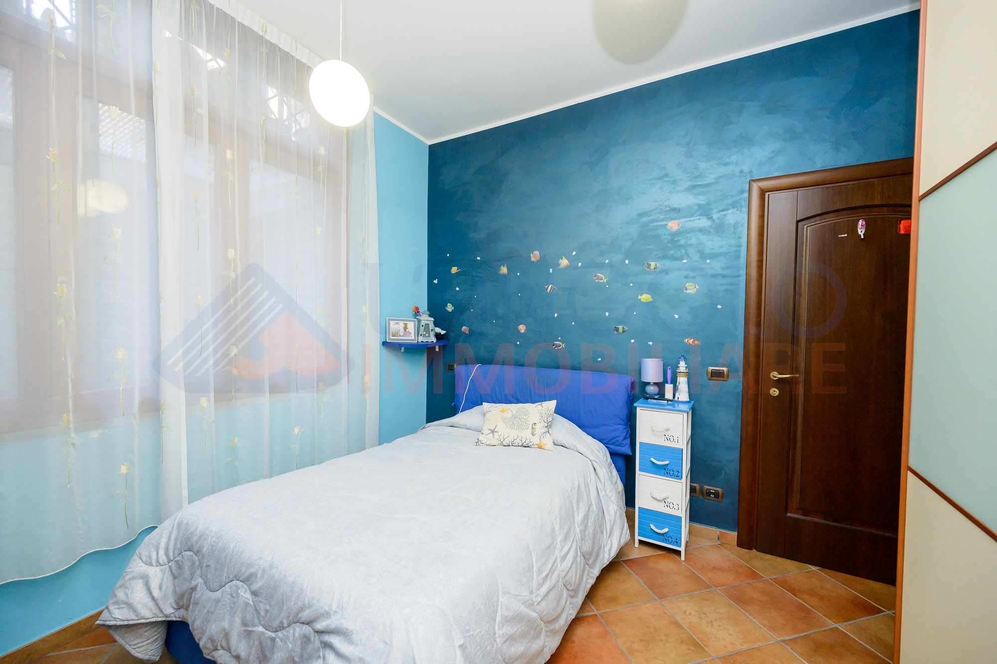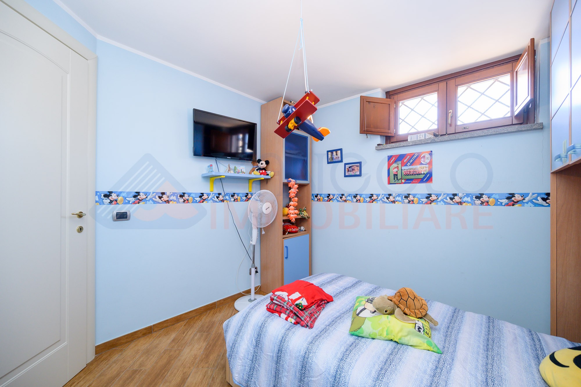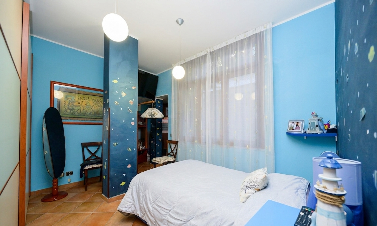 Proseguendo al primo piano (residenziale), troviamo una camera da letto matrimoniale, 2 camerette e un bagno servito da doccia.