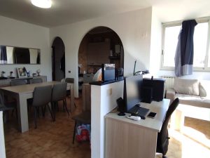 Accediamo all’immobile ed internamente troviamo ad accoglierci il soggiorno con cucina a vista; procediamo verso la zona notte passando per il disimpegno, e troviamo la camera da letto matrimoniale, ed infine il bagno servito da vasca.