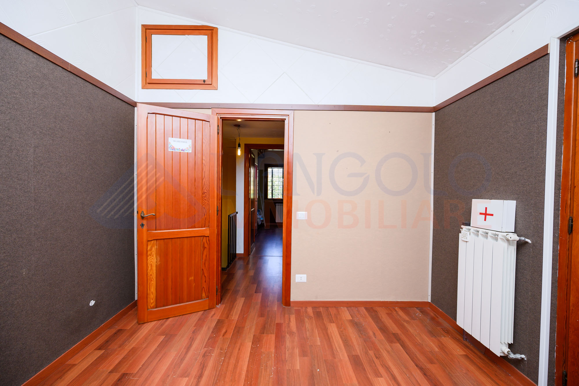 Accediamo all’immobile mediante l’ampio giardino di 100 mq in parte pavimentato, con posto auto interno, e passando per il portico troviamo la porta d’ingresso che ci conduce all’ampio soggiorno dotato di camino, procediamo e troviamo la cucina semi-abitabile ed infine bagno di servizio.