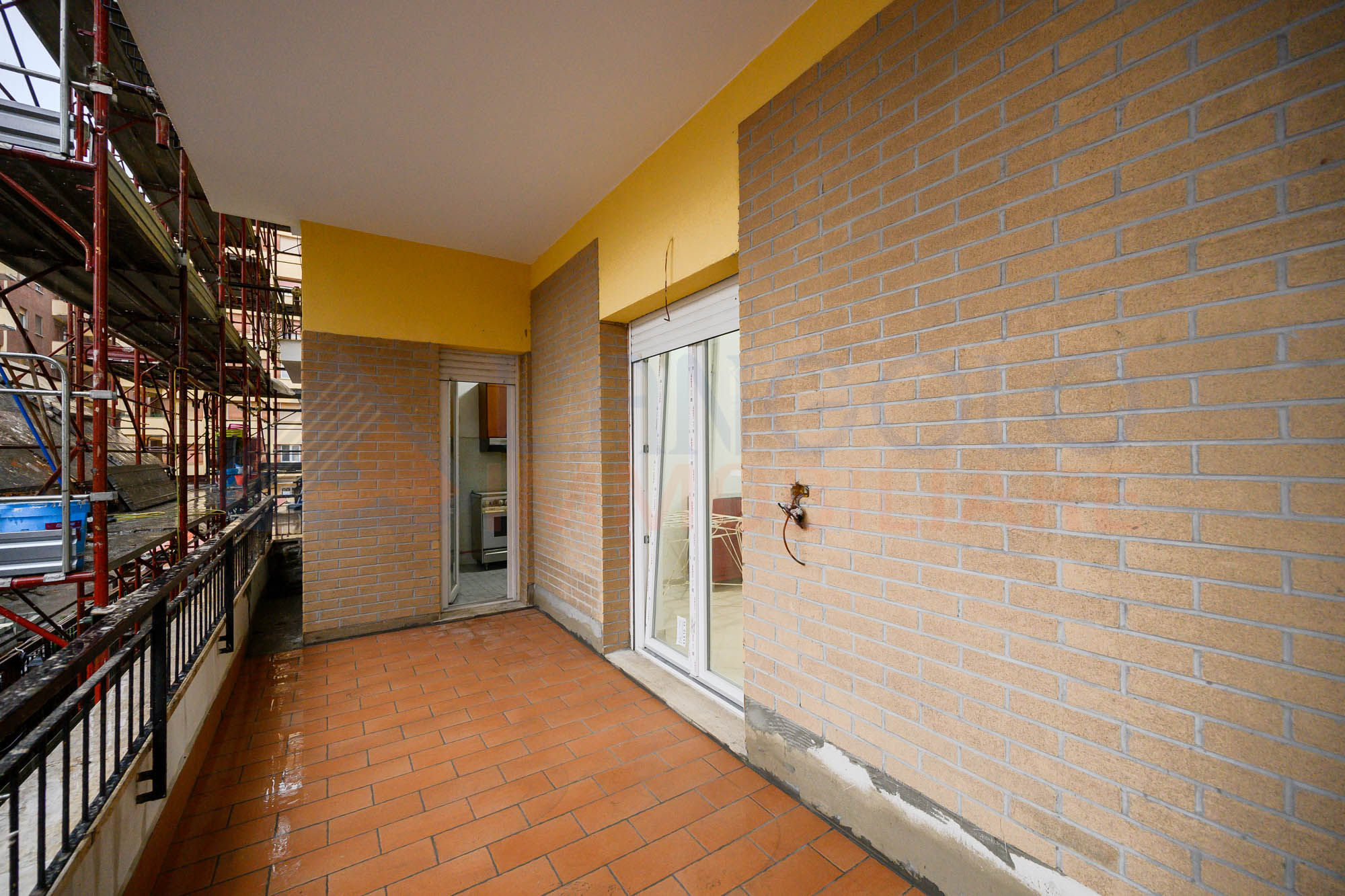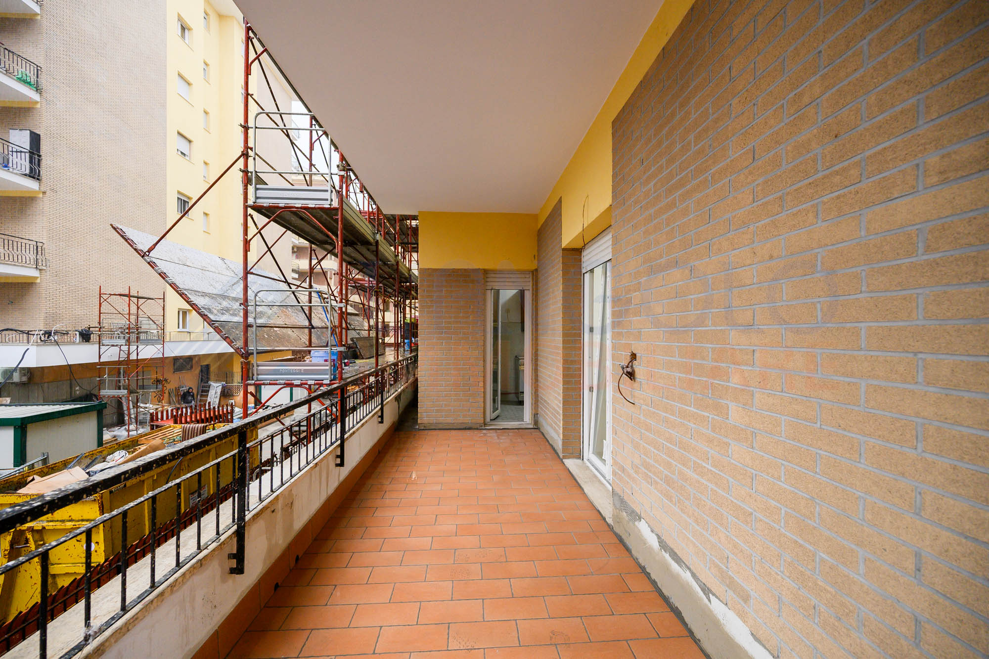 Accediamo all’immobile e troviamo ad accoglierci un ampio ingresso servito da armadio a muro, che ci conduce all’ampio soggiorno ed alla cucina abitabile, entrambe con sfogo esterno su un ampio terrazzo perimetrale di circa 45 mq. Proseguendo all’interno dell’abitazione percorrendo il disimpegno, e troviamo la zona notte composta da camera da letto matrimoniale con sfogo esterno sul medesimo terrazzo, una seconda camera matrimoniale ed infine l’ampio bagno servito da vasca.